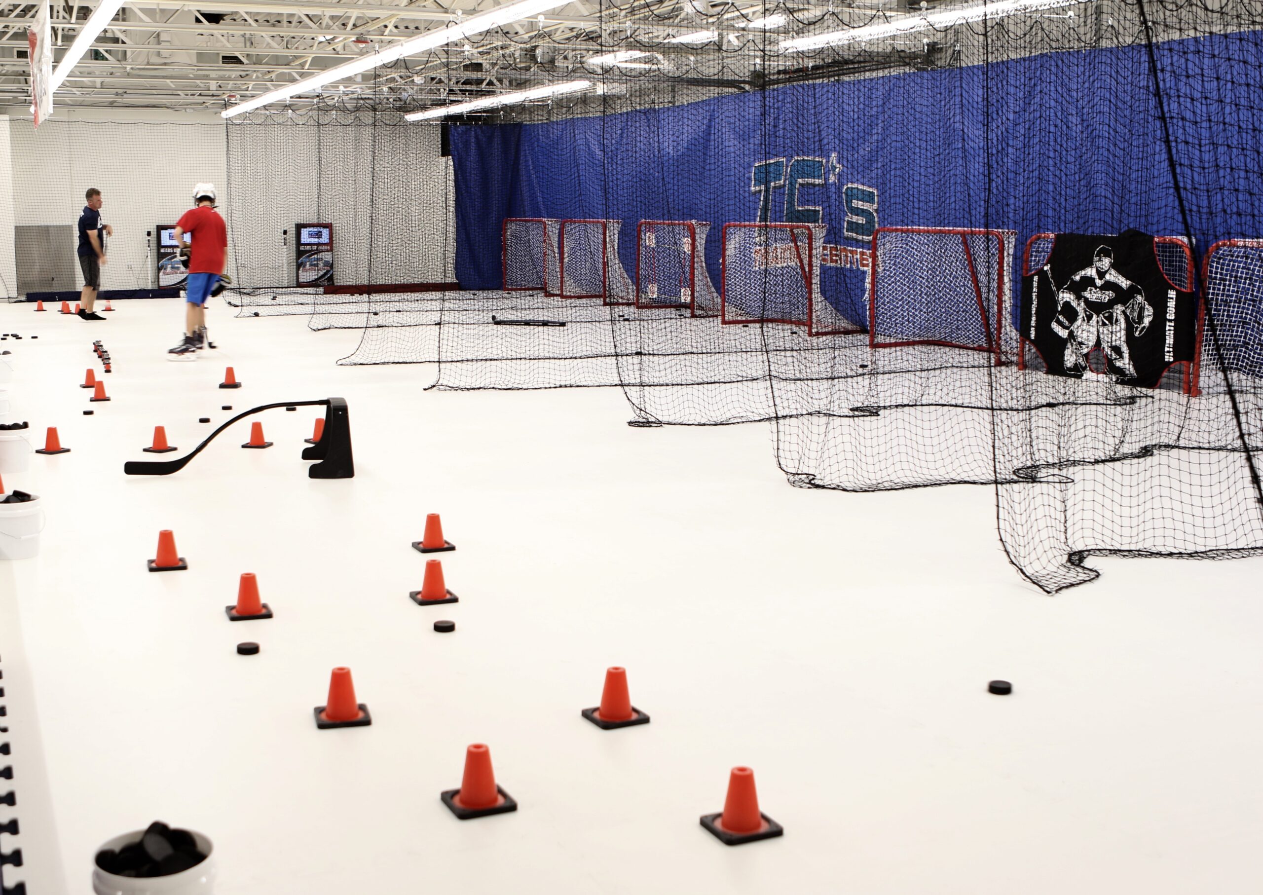 TC’s Training Center in Billerica. Among many hockey practice and training activities at the center Ed Walsh, a top-end goaltender and coach, utilizes their State of the Art Synthetic Shoot Stations and Rink.